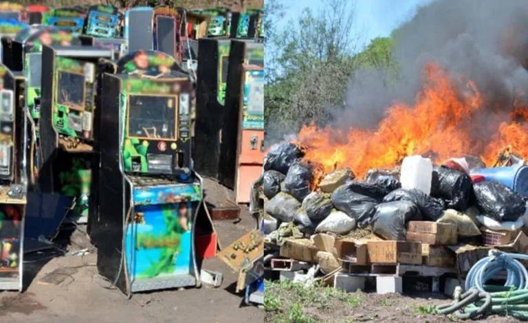 Asimismo, destruyó 186 máquinas tragamonedas y 413 objetos del delito como chalecos con placas balísticas, porta cargadores, cascos, vestimenta táctica y 50 unidades de sustancia negativa.